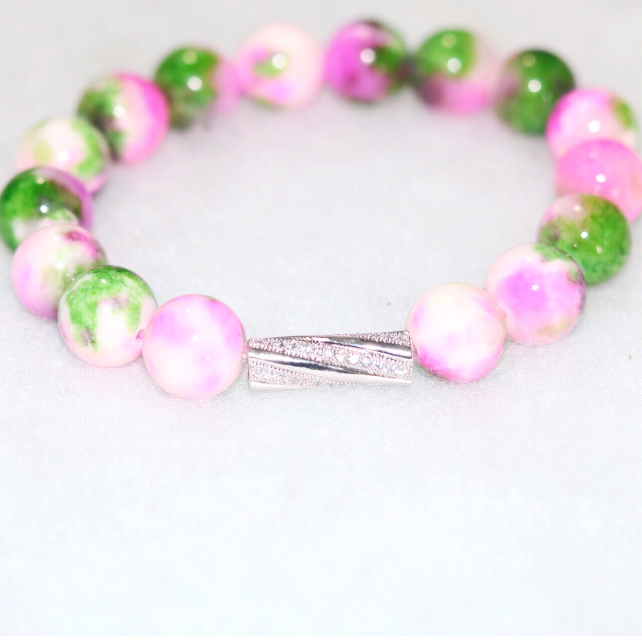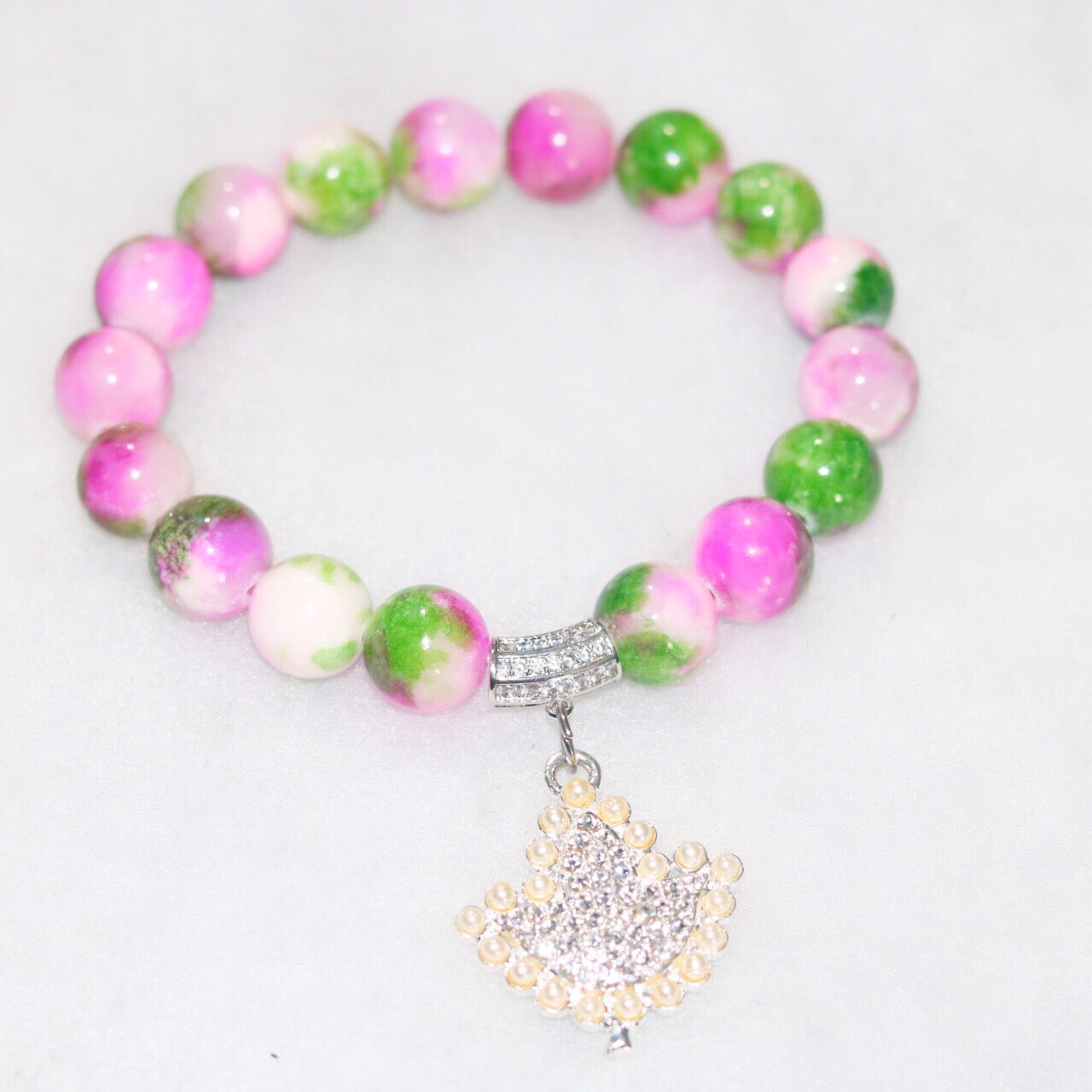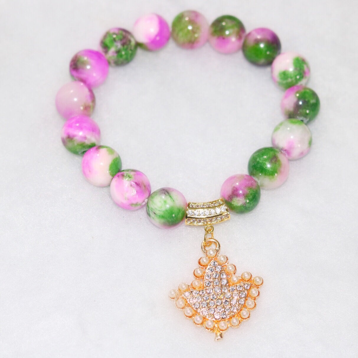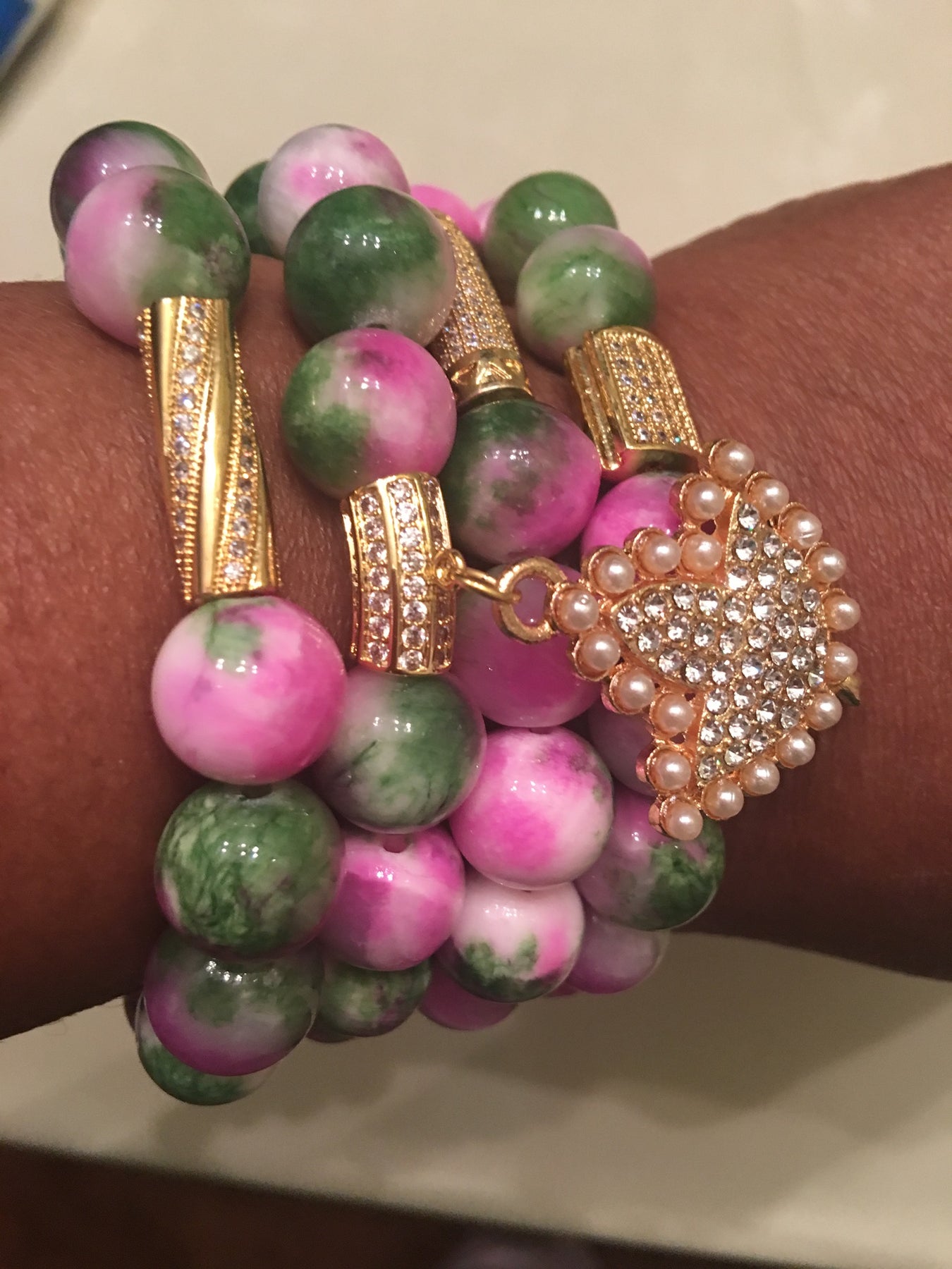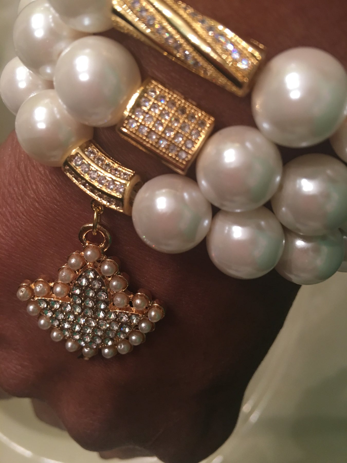 GENUINE Natural Dyed White Jade Gemstone Bead Size: about 12mm in diameter, Brass Micro Pave Cubic Zirconia Beads, Shell Pearl Beads WhiteSize: about 12mm diameter, alloy and crystal charm. Sets come with ONLY 3 bracelets.