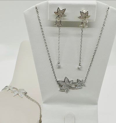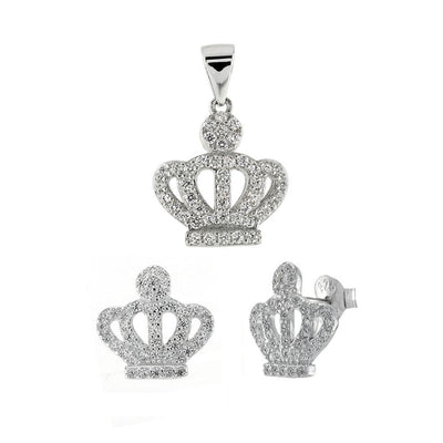 Sterling Silver CZ Crown Earrings & Pendant Set