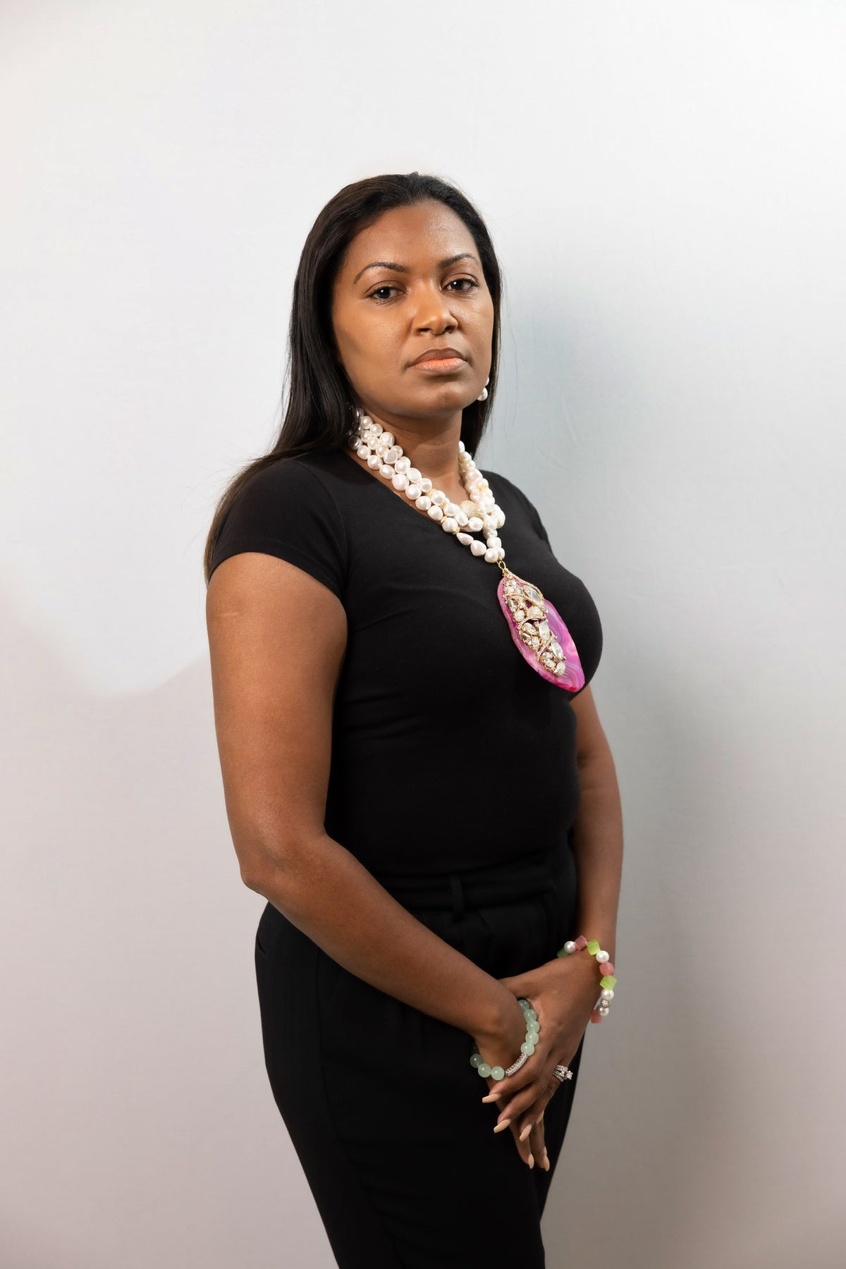 Agate, Shell Pearls, Cubic Zirconia, and Stainless Steel ONE OF KIND