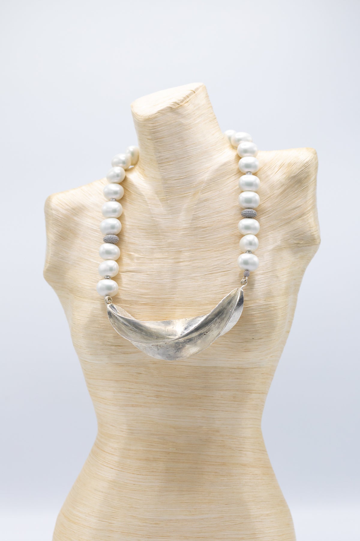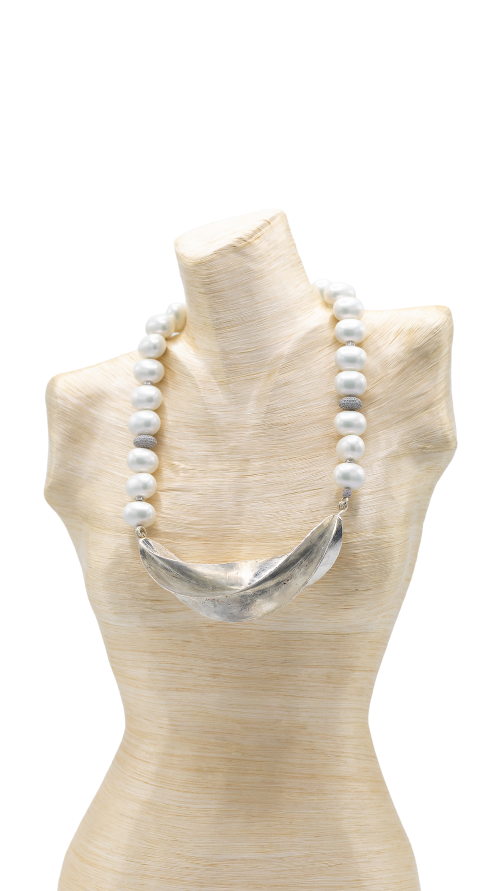 Genuine Fulani necklace paired with Shell Pearls. Pendant and earrings are authentic African craftsmanship.