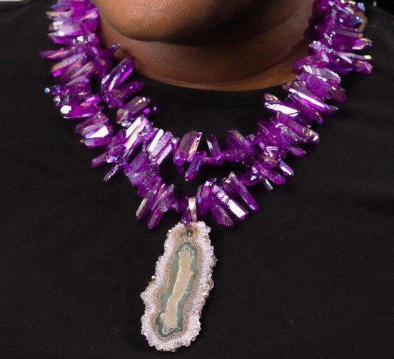 Electroplated Quartz, Crystal Druzy and Sterling Silver ONE OF KIND