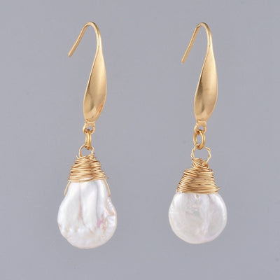 Natural Baroque Pearl Keshi Pearl Wire Wrapped Earrings