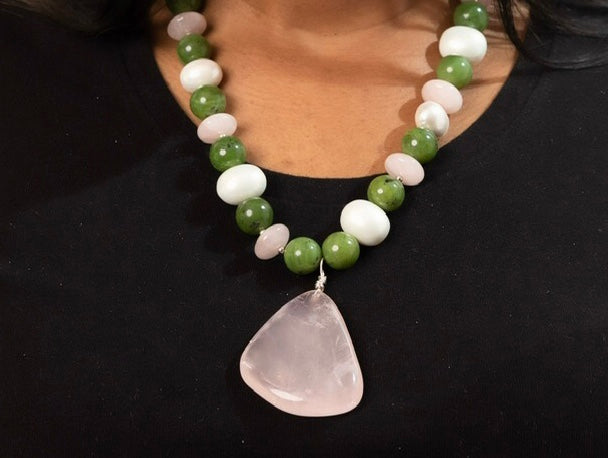 Rose quartz, Shell Pearls, aventurine, stainless steel and Sterling Silver ONE OF KIND