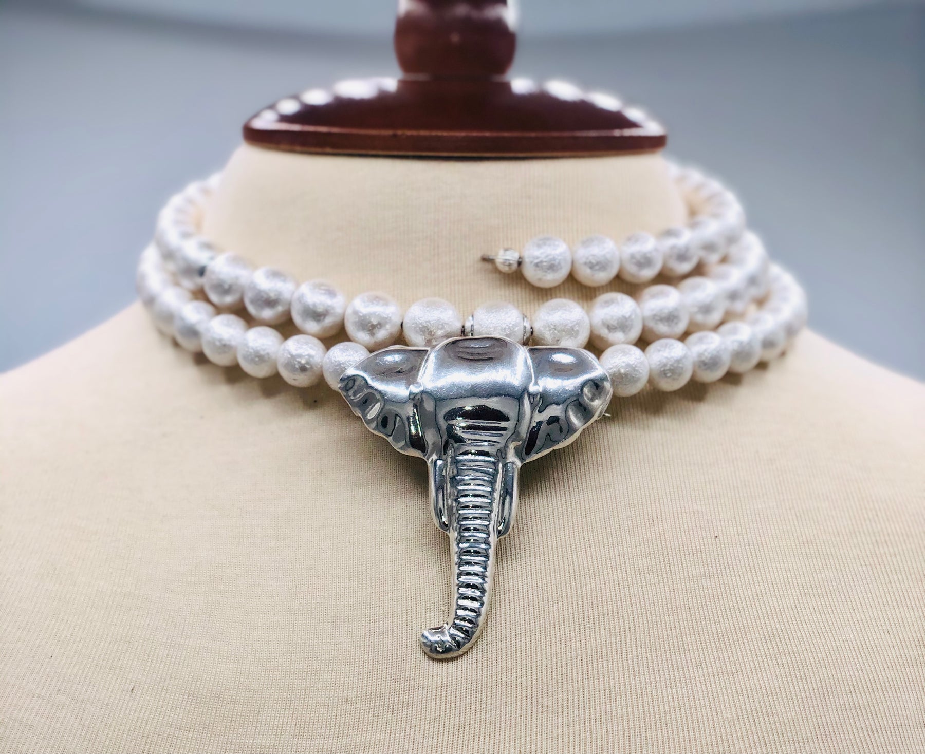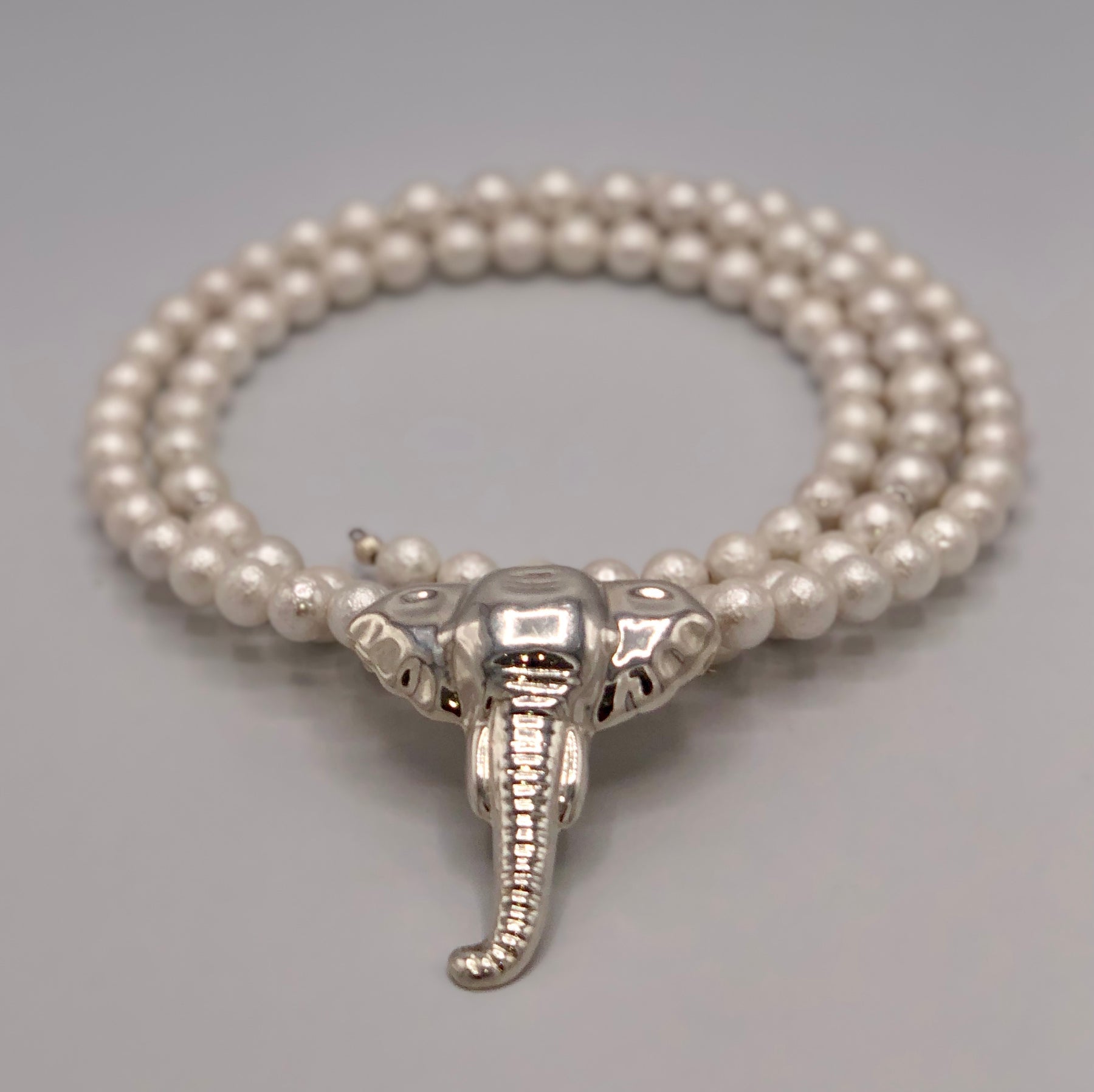 Shell Pearls and Vintage Sterling Elephant 925 SS HARDWARE