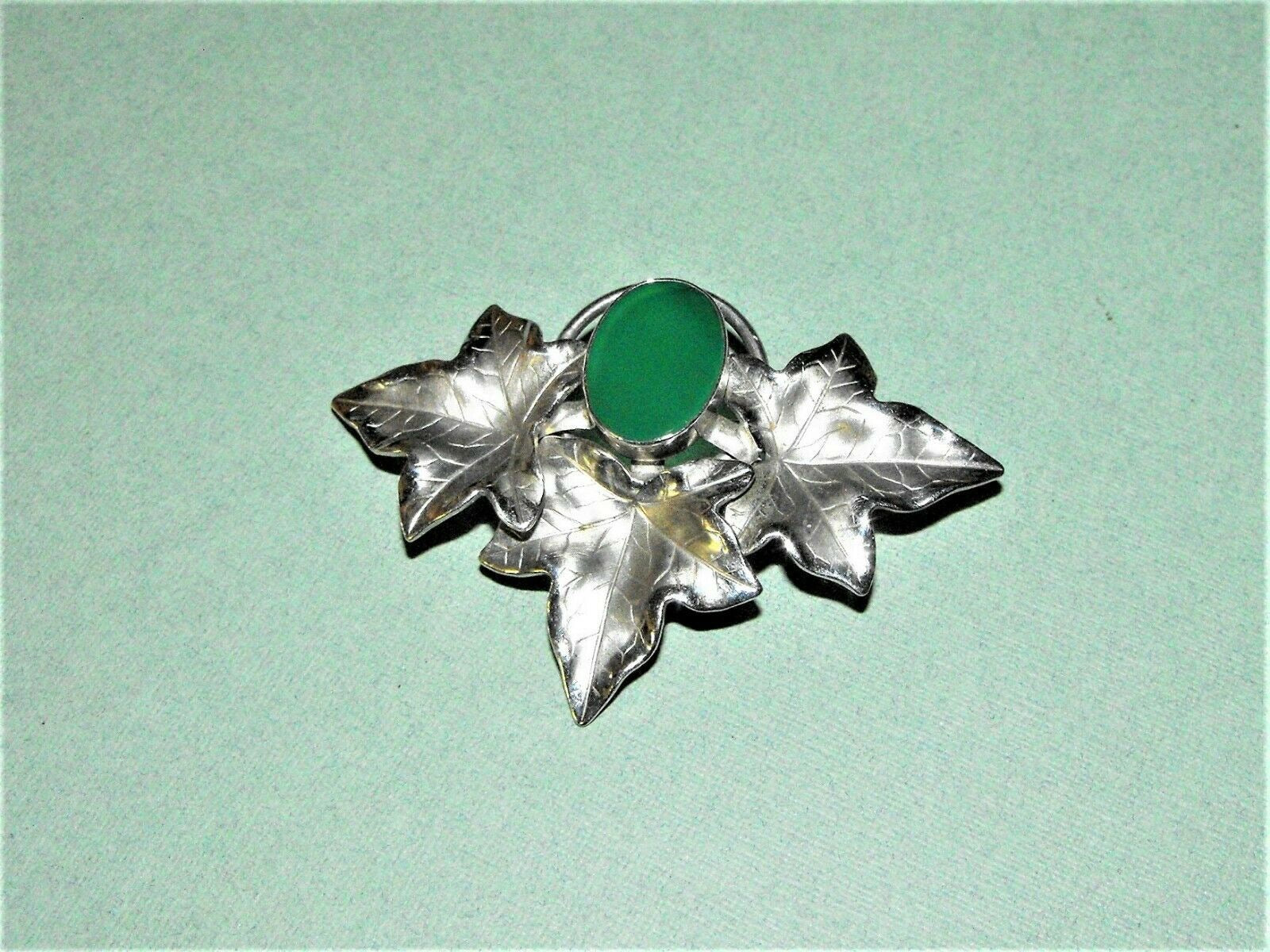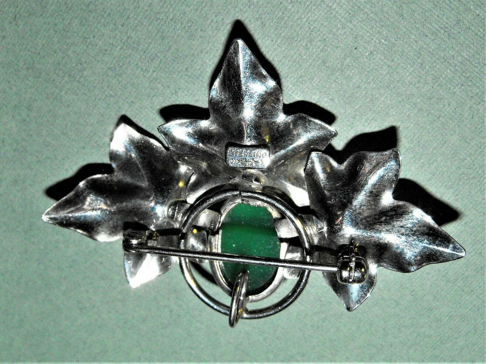 Carl Art Sterling Silver Jade Pendant Pin Brooch Figural Nouveau Floral Leaf 925