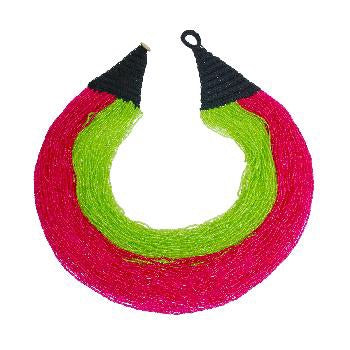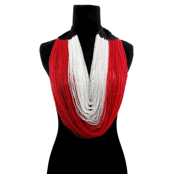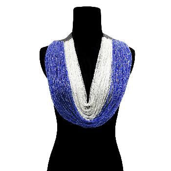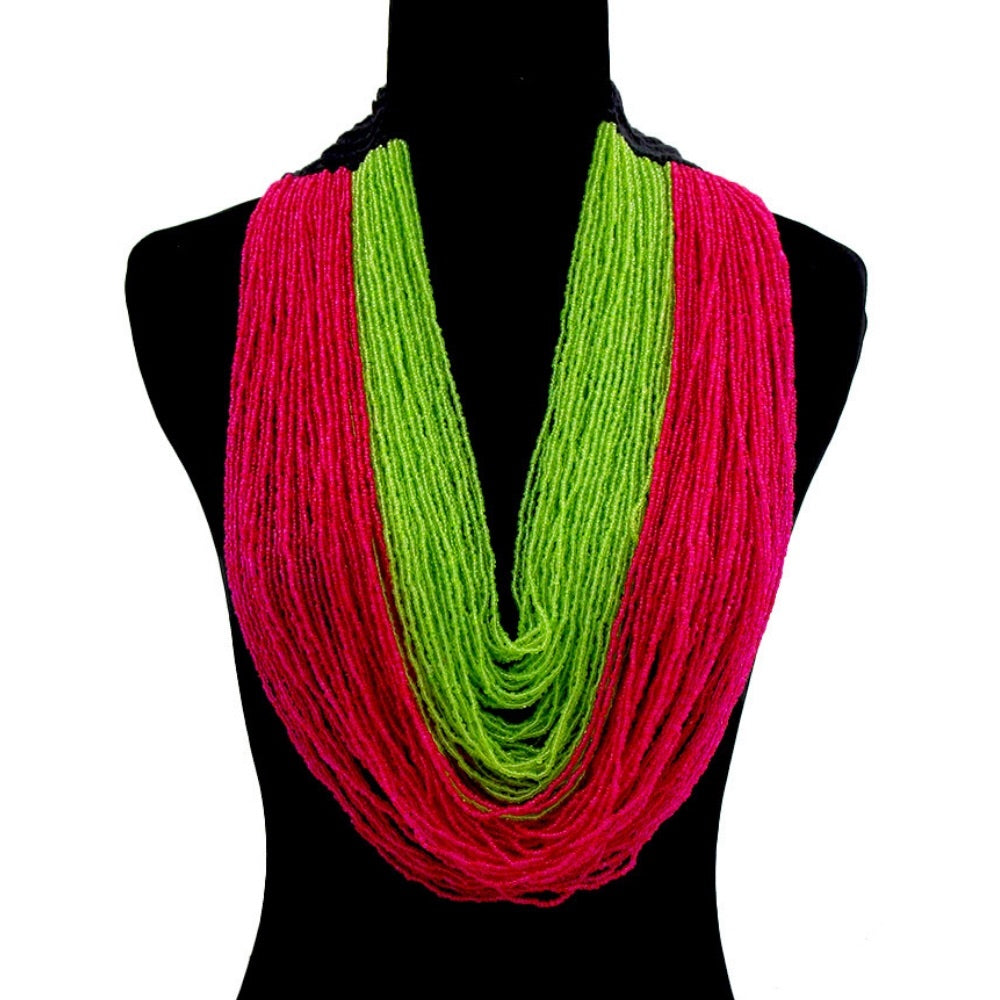 Long Layered Seed Bead Necklace with Toggle Closure. 100 Strands. Beads sit 4 inches wide when worn. Handcrafted. 26 inches long