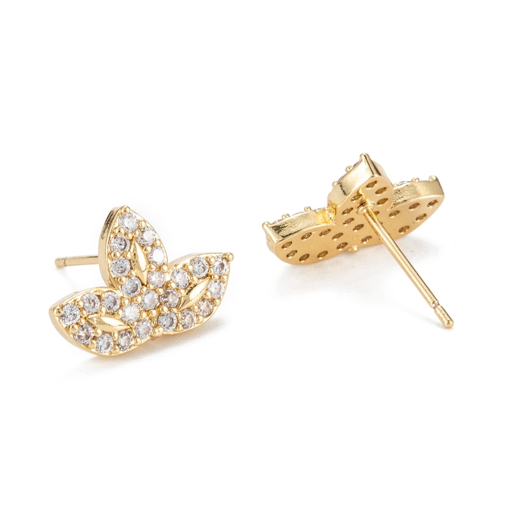 Leaf Sparkling Cubic Zirconia Stud Earrings, Lead Free & Nickel Free & Cadmium Free, Brass Micro Pave Cubic Zirconia Earrings, Real 18K Gold Plated 15 mm