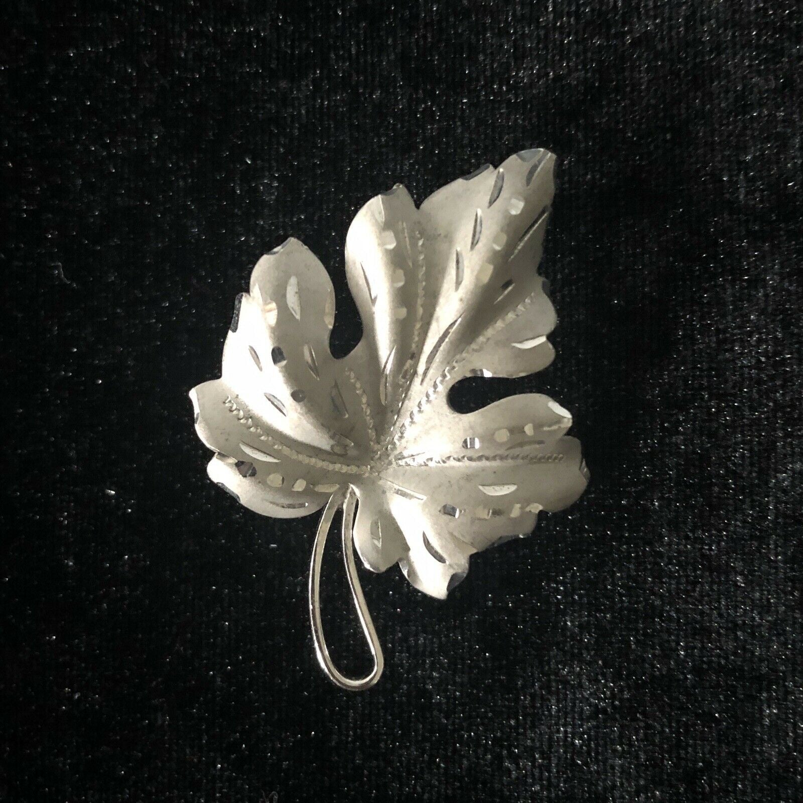 This is a great pin made of fine sterleing silver. The leaf has cut outs that make it sparkle and gleam in the light. The dainty stem is lightweight and has a loop. Classic and elegant.