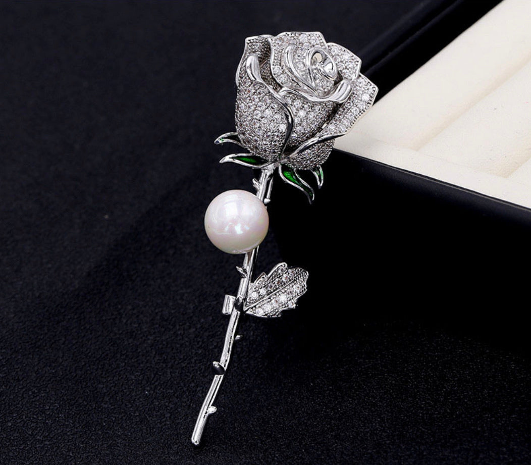 White Bling Rose Brooch
